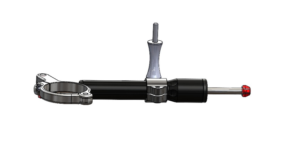 Lenkdämpfer-Kit, komplett mit Anschlüssen, Montage-bereit, ausschließlich an Racing-Motorrädern, ohne Scheinwerfer und elektrische Accessoires am Vorderrad.