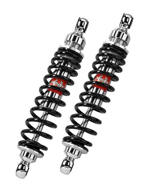 Ein Paar hintere Stoßdämpfer mit den gleichen Konstruktionsmerkmalen wie die WMB0-„Zwillinge“. Sie werden mit einer GRÖSSEREN Länge von +10 mm im Vergleich zum Radstandmaß der Originaleinheiten hergestellt, für diejenigen, die das Heck ihres Motorrads „anheben“ möchten oder müssen.