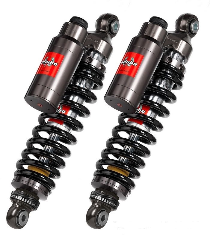 Corps d'amortisseur en acier allié à haute résistance, tige en acier Ø12mm, chambre de compensation séparée en aluminium, pressurisée au gaz (Azote), têtes en alliage d'aluminium usinées dans la masse avec usinage CNC.